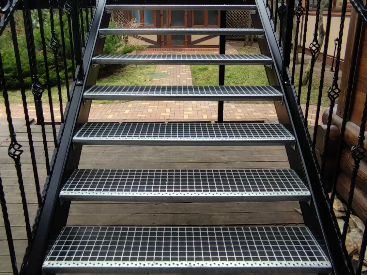 При изготовлении ступеней и площадок применяются оцинкованные маты на базе прессованных оцинкованных решеток (DIN 24531/DIN 24537), рифленый и перфорированный лист, облегченные С и Z-профили. В рекреационных и курортных приморских зонах ступени и ограждения могут быть выполнены из Древесно- и Минерально-полимерного композита.